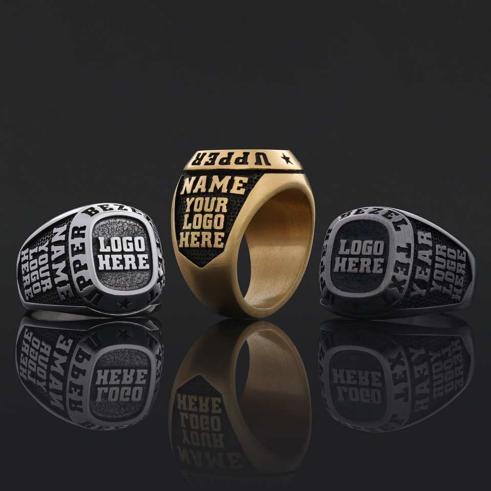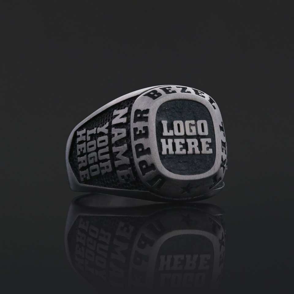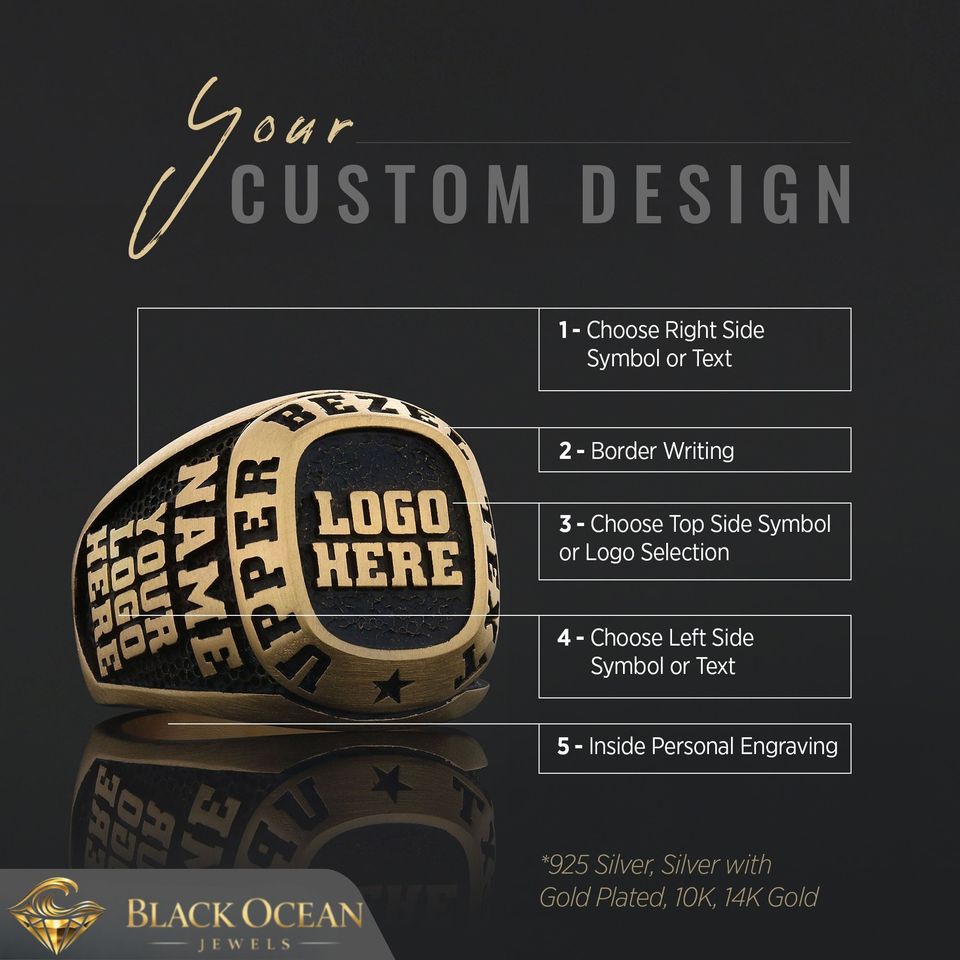 Anillo Personalizado BOJ 022 con Nombre Grabado y Logotipos Personalizados, Hecho a Mano en Plata 925 Chapada en Oro, Diseño Exclusivo, Precio Bajo, Gran Venta