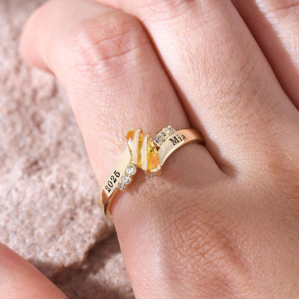 Anillo de Graduación Universitario Personalizado BOJ School Ring 059, Anillo de Colegio Secundario para Ella, con Piedra de Nacimiento, Plata 925, ¡Oferta!
