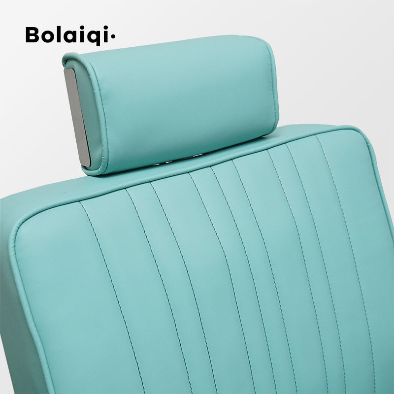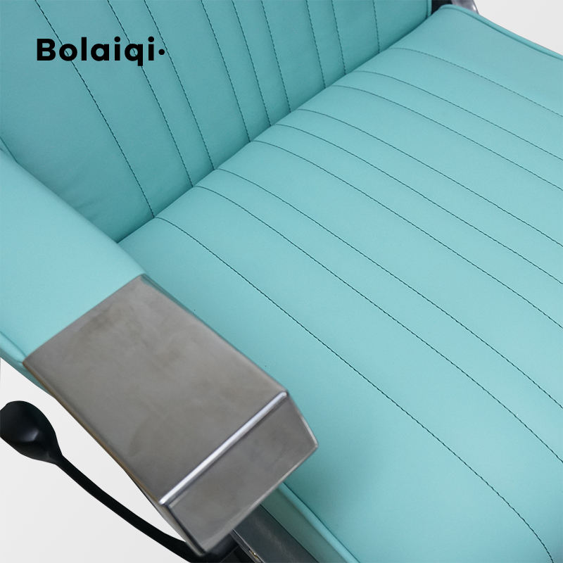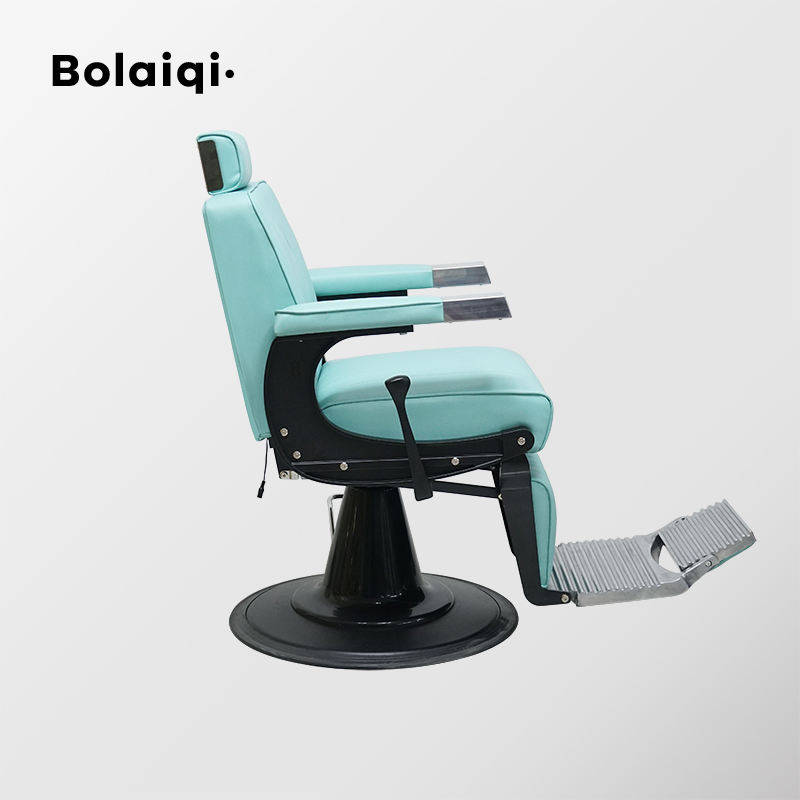 Silla de peluquería azul Tiffany BOLAIQI, sillón reclinable de cuero sintético dorado para afeitado, sillas de peluquería para hombres