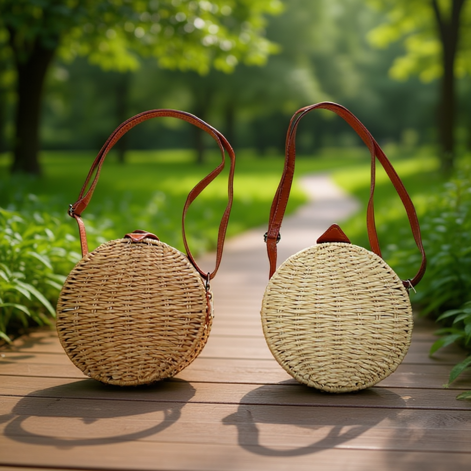 Bolsos Redondos de Paja con Carcasa Rígida 18x7cm, Bolso de Hombro de Ratán Tejido