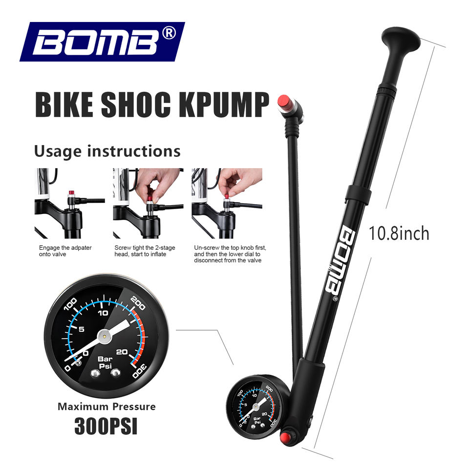 Bomba de Bicicleta Portátil BOMB con Manómetro y Botón de Liberación de Aire, 300 PSI, Bomba de Aire para Suspensión Delantera y Trasera