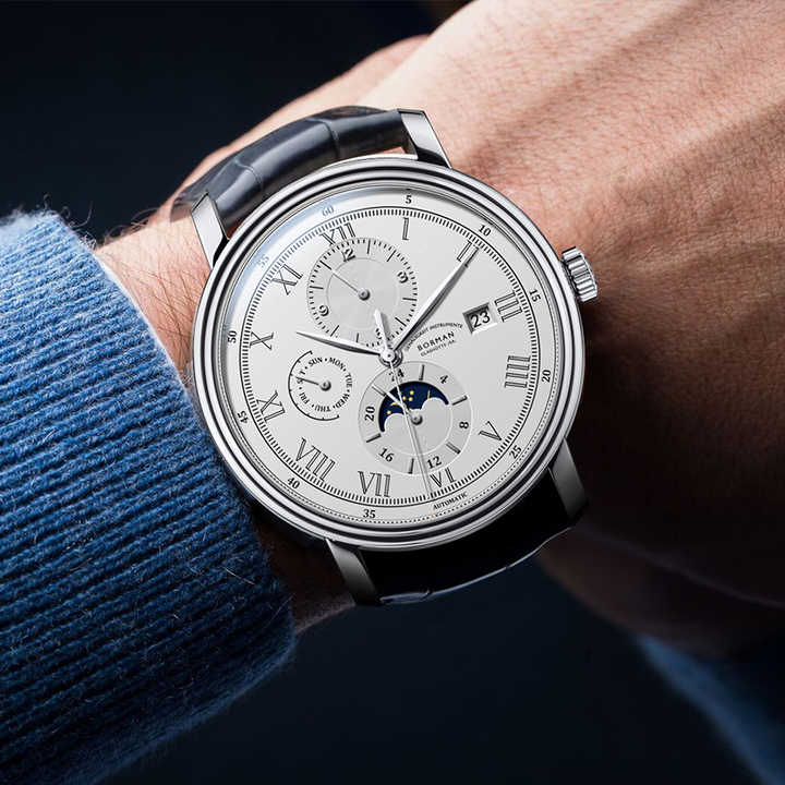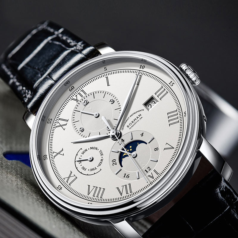 BORMAN Reloj de negocios completamente automático para hombre, resistente al agua, correa de cuero fina, entrega rápida, Material de acero inoxidable resistente al agua