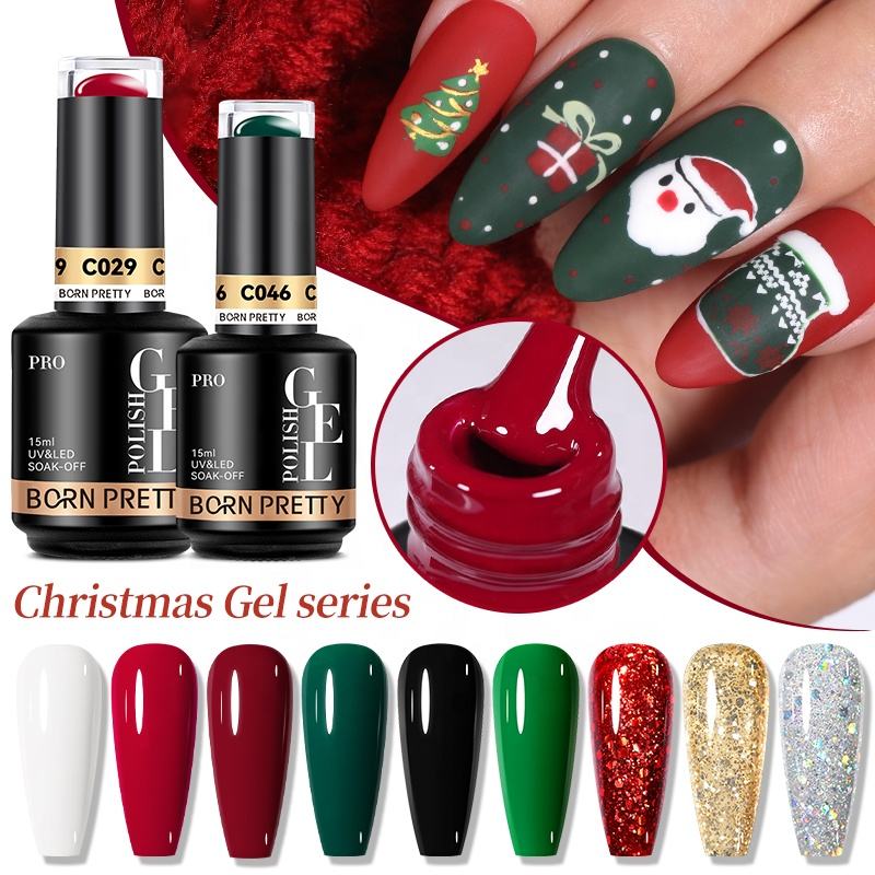 BORN PRETTY PRO 2025 Regalos de Año Nuevo, Esmalte de Uñas en Gel de Color, UV LED, Removible, Rojo, Verde, Dorado, Plateado, Serie Navideña