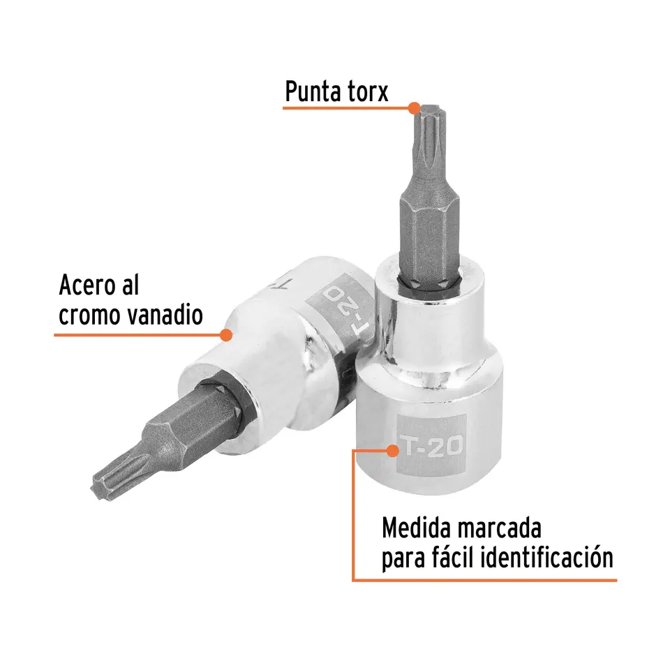 Juego de 6 llaves de vaso Torx T-20, con accionamiento de 3/8 pulgadas, TRUPER