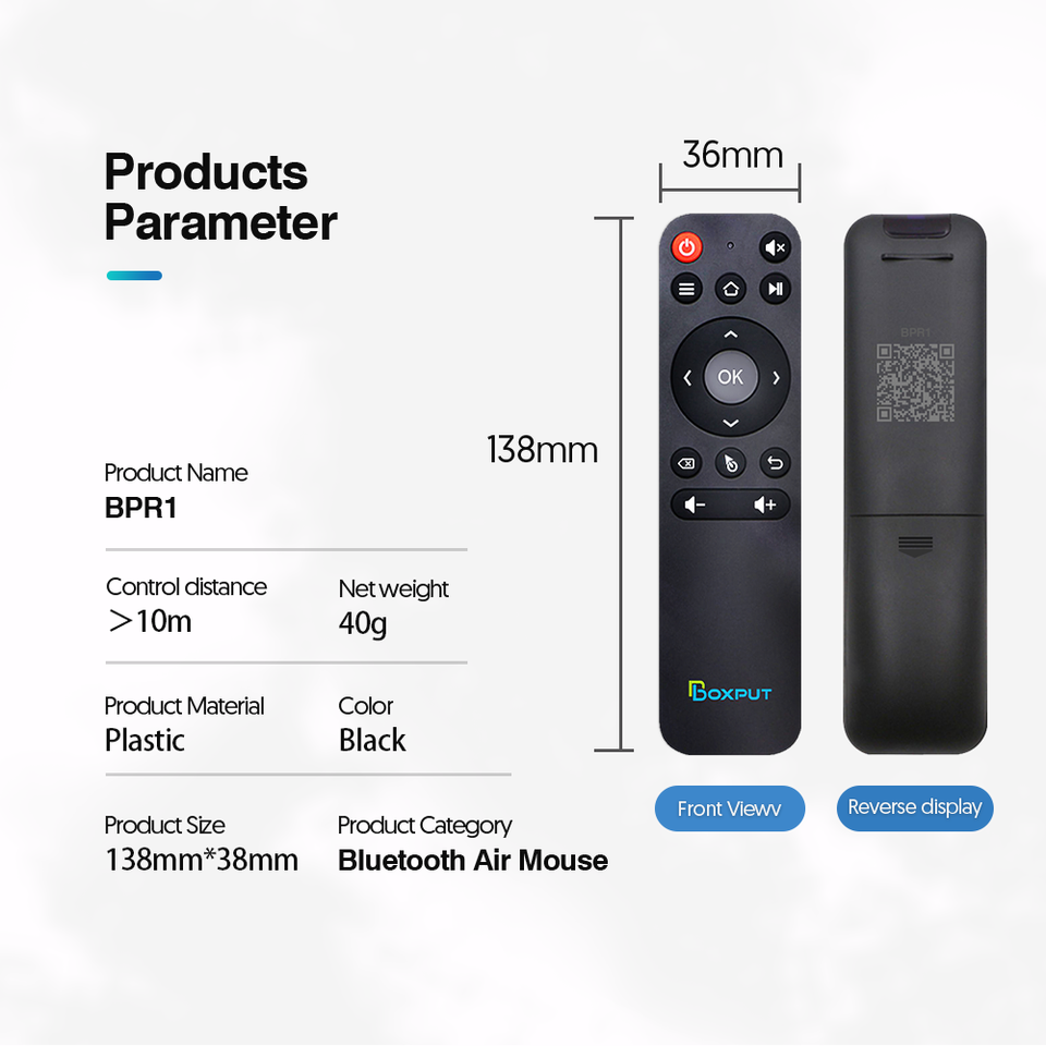 Indicador LED de luz, Air mouse, Control de voz, Uso: Televisión, Método de transmisión: BT 5.0, BPR1: Sin función de voz, BPR1: Sin función de giroscopio, BPR1: No 2,4G, BPR1S: Con función de giroscopio, BPR1S: No 2,4G, BPR1S Plus: Con función de giroscopio, BPR1S Plus: Con función de voz, BPR1S Plus: Con 2,4G, Descripción: Venta al por mayor disponible