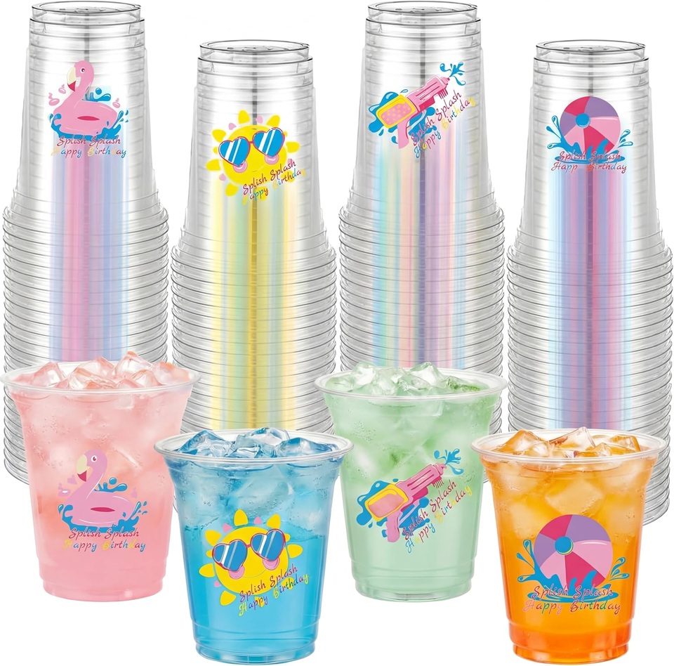 Vasos de Plástico Biodegradables, Libres de BPA, Impermeables y Ecológicos con Tapas, Paquete al por Mayor, para Café Helado, Bebidas Frías, Jugos, Desechables para Fiestas