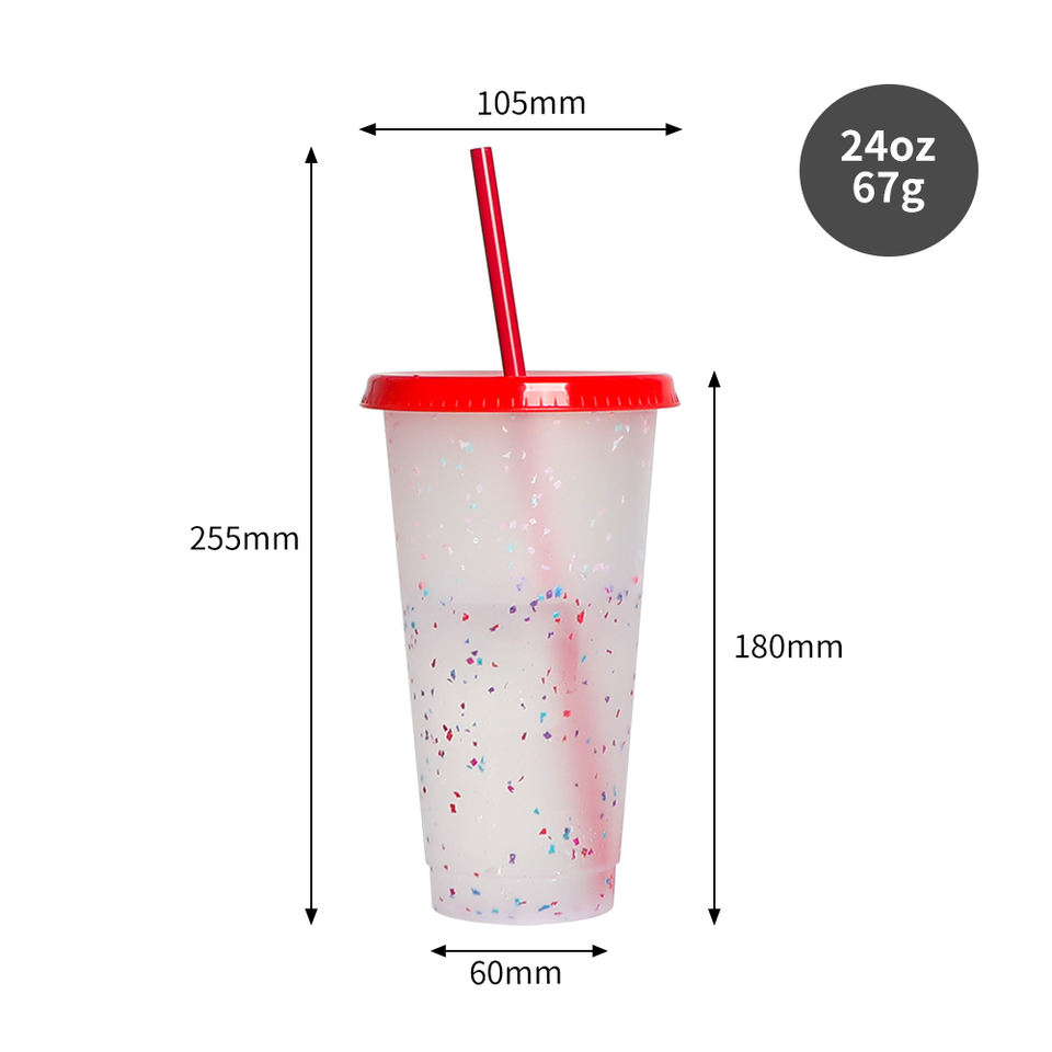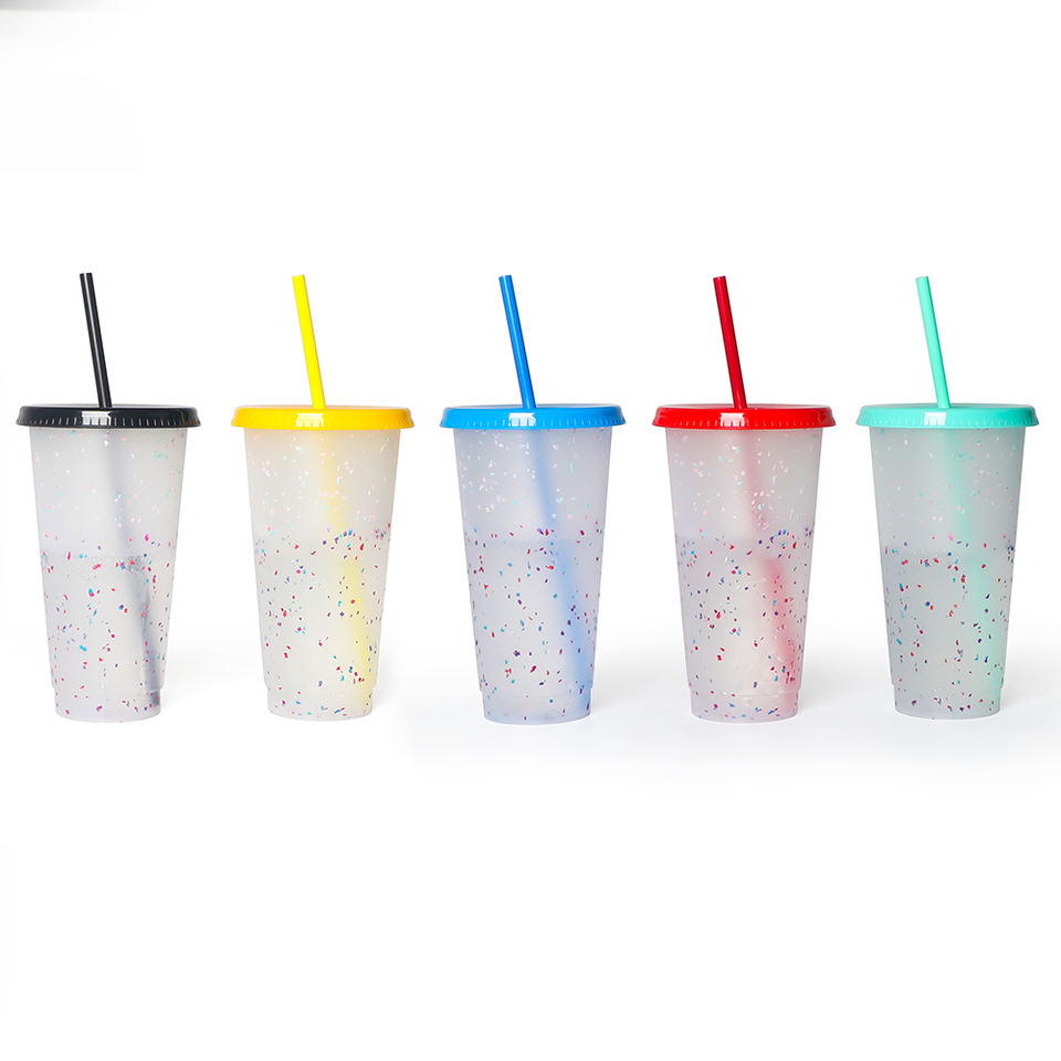 Vaso de Plástico Reutilizable sin BPA, Colorido, para Fiestas y Campamentos, con Confeti que Cambia de Color, con Tapas y Pajitas para Café Helado