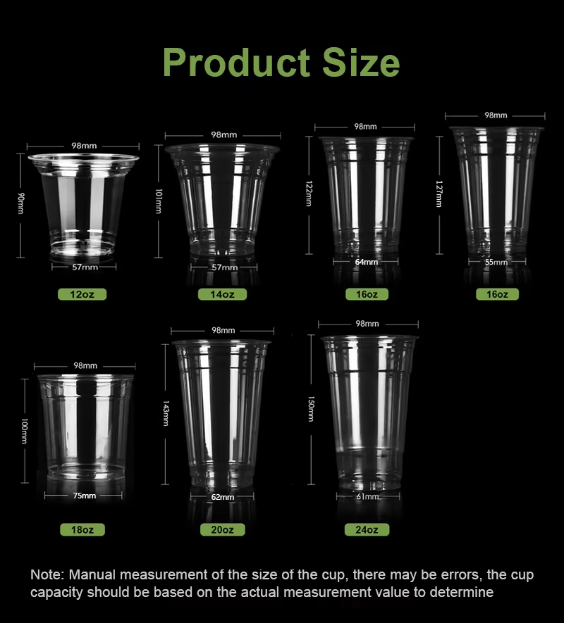 Vaso de Plástico Transparente Desechable de 16 oz, Resistente a Impactos y Libre de BPA, con Tapa y Logotipo Personalizado para Jugos, Smoothies, Bebidas Frías, Uso en Cafeterías