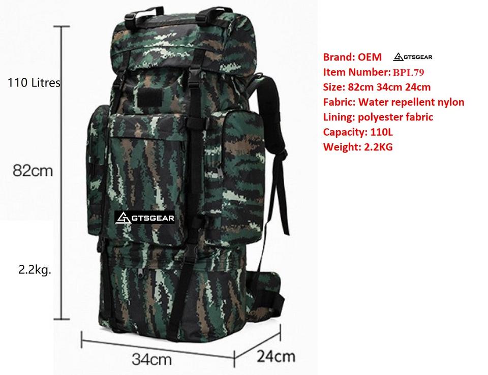 BPL79 C5 camuflaje al aire libre impermeable 65L/100L mochila táctica de gran capacidad con cremallera supervivencia caza bolsa de entrenamiento de campo