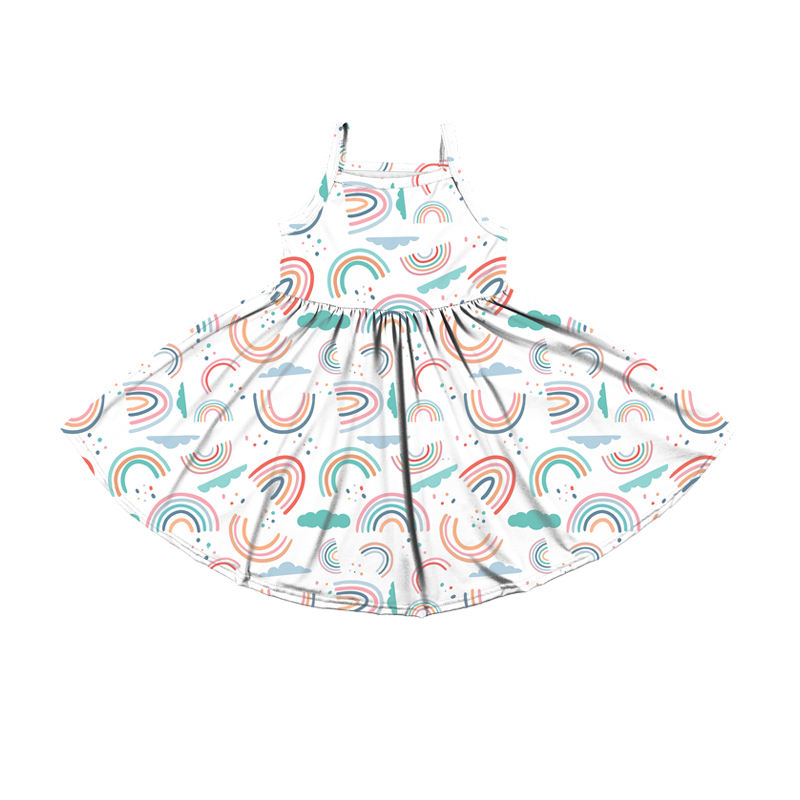 BQ-526-XXM Vestido de Verano para Niñas, Estilo Nuevo, Estampado Personalizado, Sin Mangas, Casual, con Gran Falda Rodada