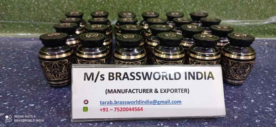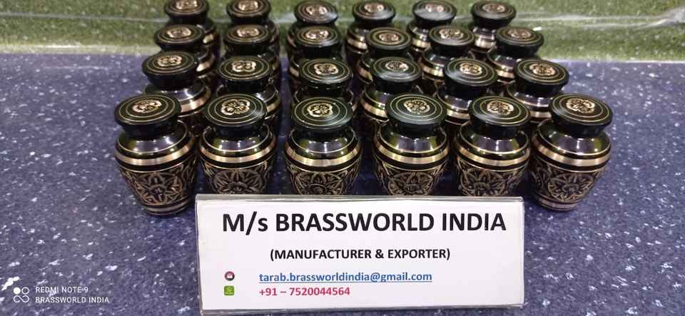 Recuerdo grabado en oro y negro de latón, urna de cremación, suministros funerarios, BRASSWORLD, INDIA