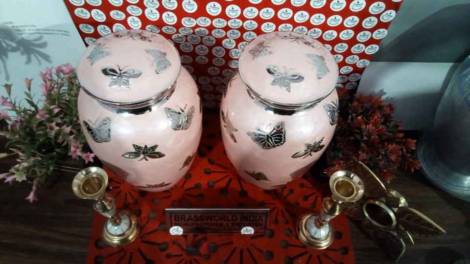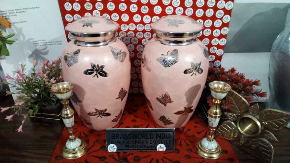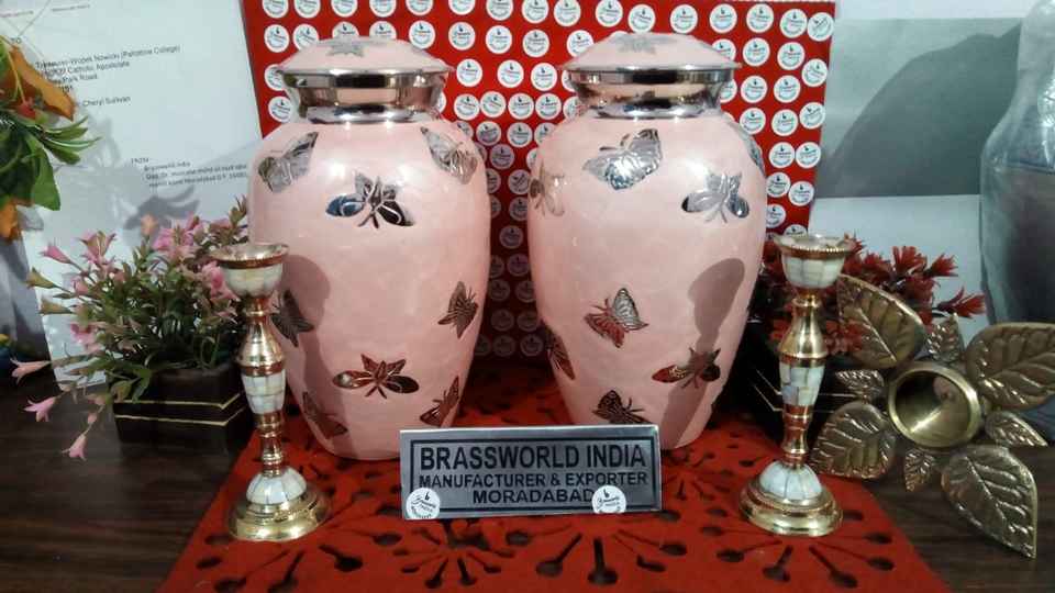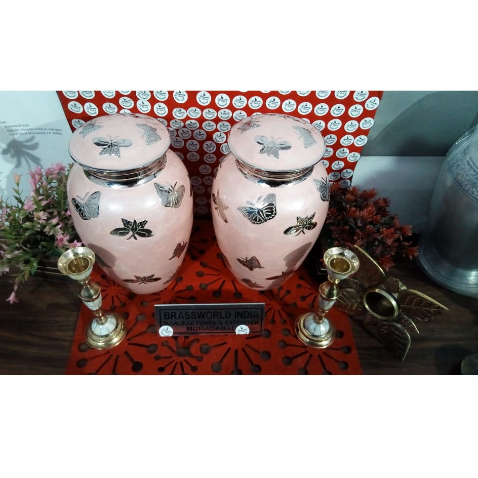 Urna Funeraria de Latón Rosa con Mariposa Plateada Grabada, Estilo Americano, Artículos Funerarios para Adultos