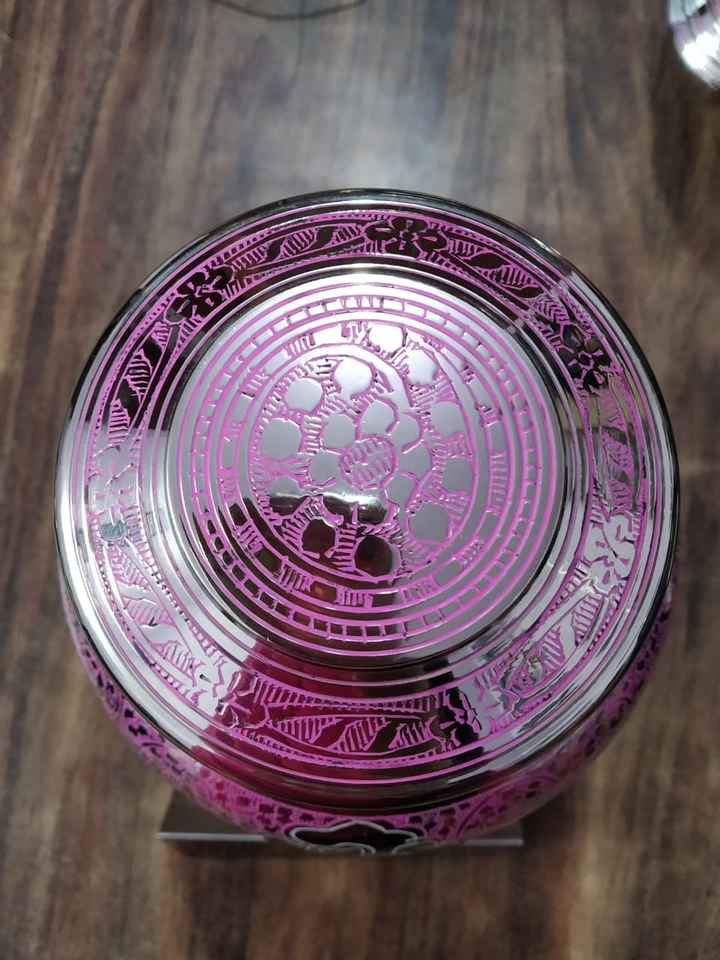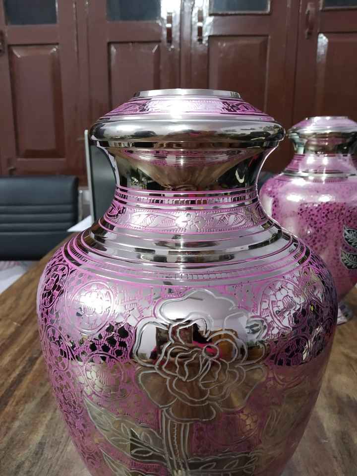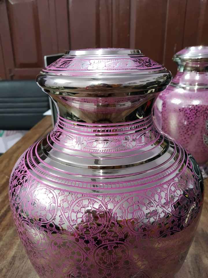 Brassworld India Urna de cremación de latón púrpura con suministros funerarios grabados de flores