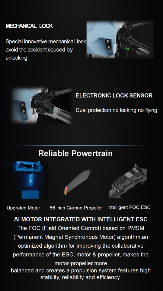 Motor, Drone Frame, Flight Controller, Spraying SystemLos componentes principales.