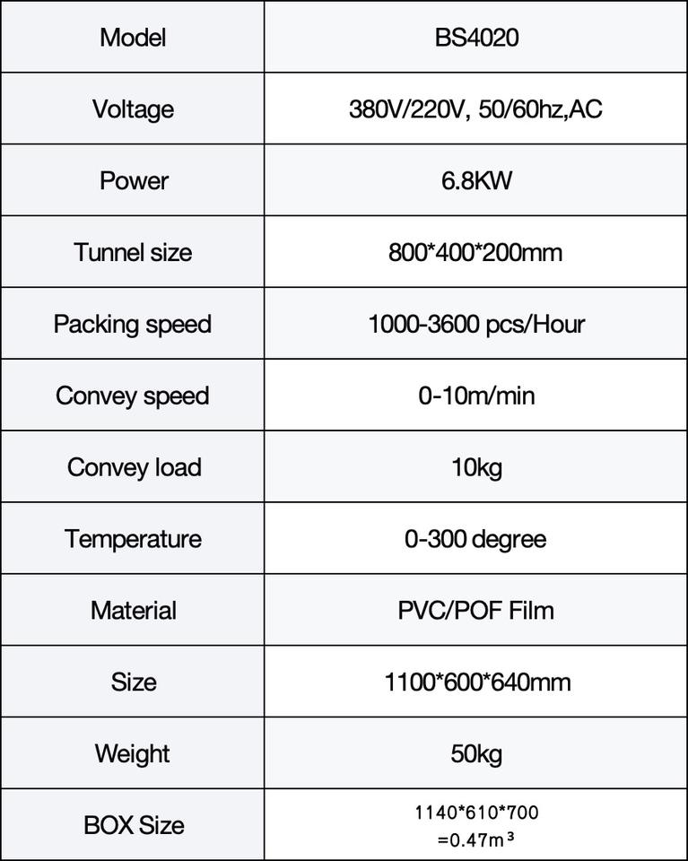 Máquina Termoencogedora Automática BS4020 con Motor Eléctrico para PVC y POF, Túnel Térmico Pequeño, Voltaje Personalizado, 1 Año de Garantía para Prendas de Vestir