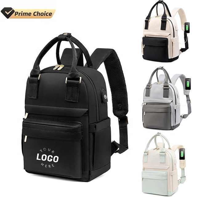 Mochila BSCI personalizada para mujer, elegante, Vintage, impermeable, Oxford, mochila con puerto USB, bonito monedero de viaje universitario para niñas