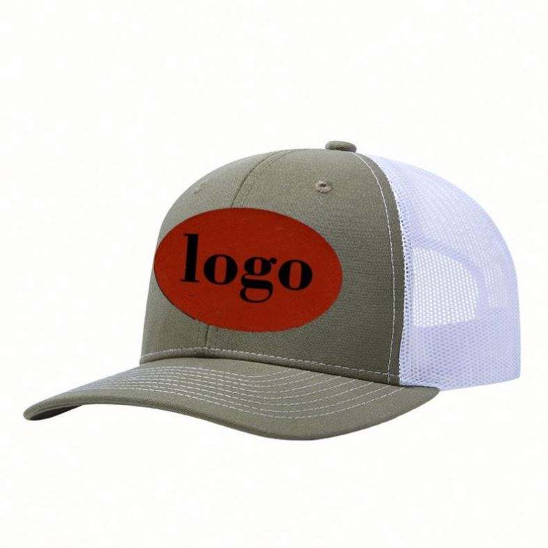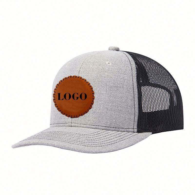 Gorra Trucker de 6 Paneles con Malla 112, Logotipo Bordado, Cierre a Presión, de Algodón Twill de Alta Calidad para Hombre, Personalizada por Fábrica BSCI, con Parche de Cuero