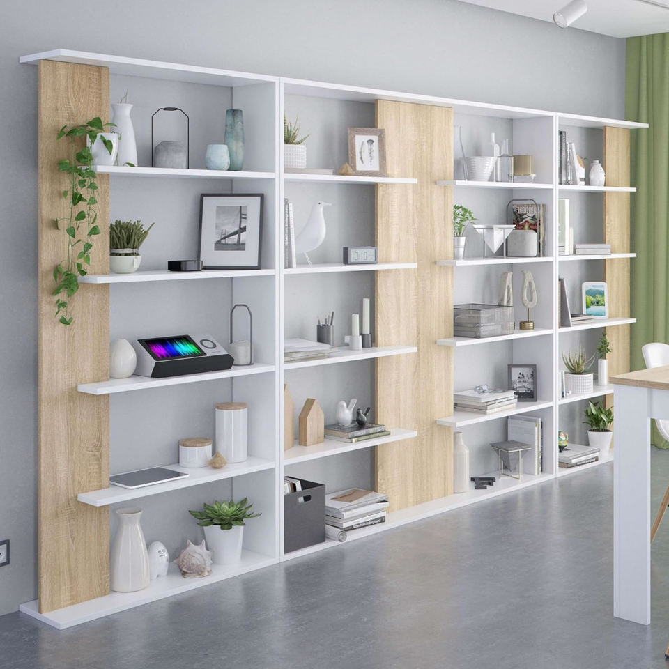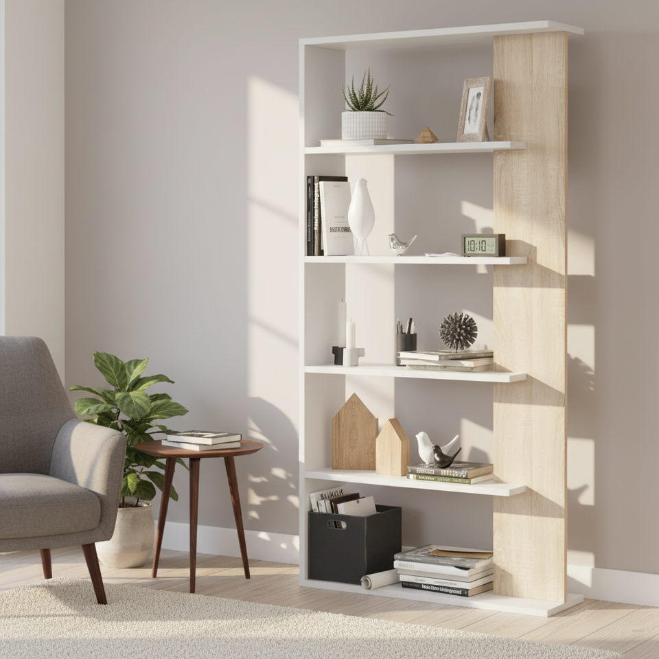 Estantería Moderna de 5 Niveles con Estantes Abiertos, Directo de Fábrica BSCI, en Roble Blanco, para Sala de Estar, Comedor u Oficina