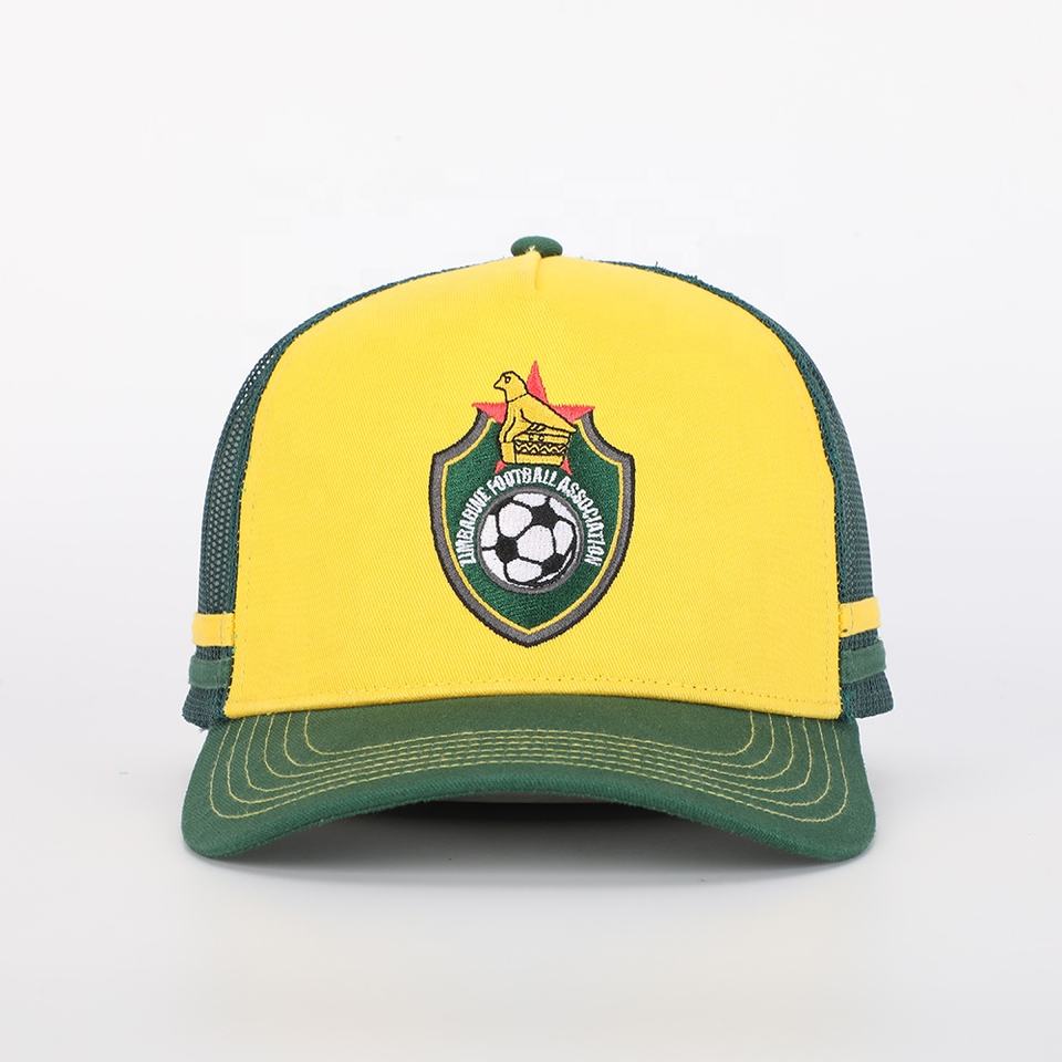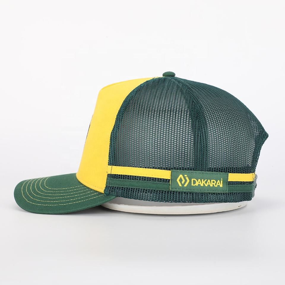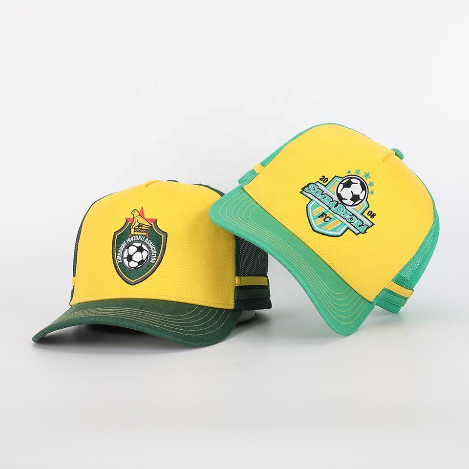 Gorra Deportiva de 5 Paneles con Logotipo Bordado de Alta Calidad de Fábrica BSCI, Gorras de Algodón Amarillo al por Mayor, Gorra Trucker Clásica Personalizada OEM