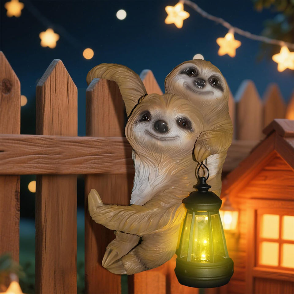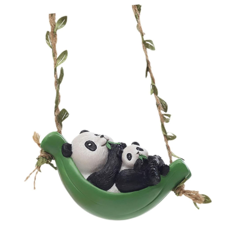 Escultura de columpio de mapache de resina de fábrica BSCI con adornos de decoración colgantes de jardín con linterna Solar