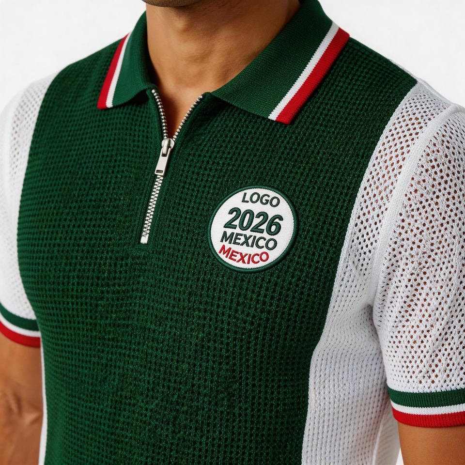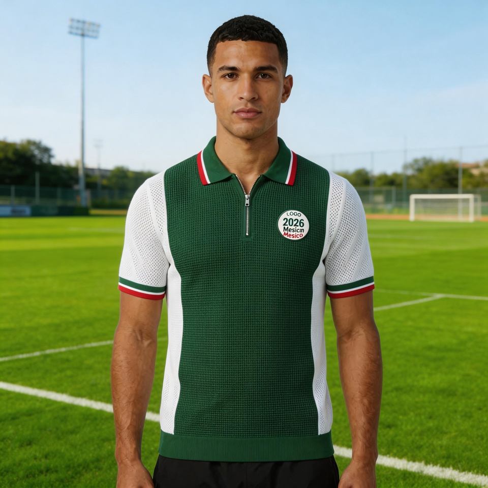 Suéteres Personalizados BSCI/WRAP para Hombre, Estilo Mexicano, Tejido Waffle, Jersey de Fútbol de Punto Calado, 100% Algodón, Polo de Manga Corta