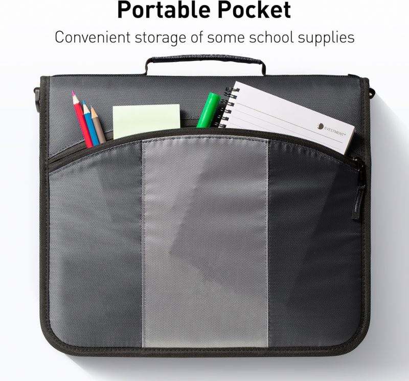 Carpeta con Cierre BSCI de 2 Pulgadas y 3 Anillas con Correa para el Hombro, Carpeta con Múltiples Bolsillos, Muestra Gratuita, Hecha de Poliéster Resistente