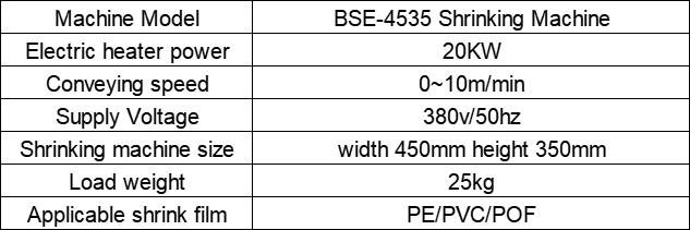 BSE-4535 Custom Electric POF/PVC/PE Film Food Grade Apparel Chemical Automatic Thermo Shrink Packaging Machine High Productivity