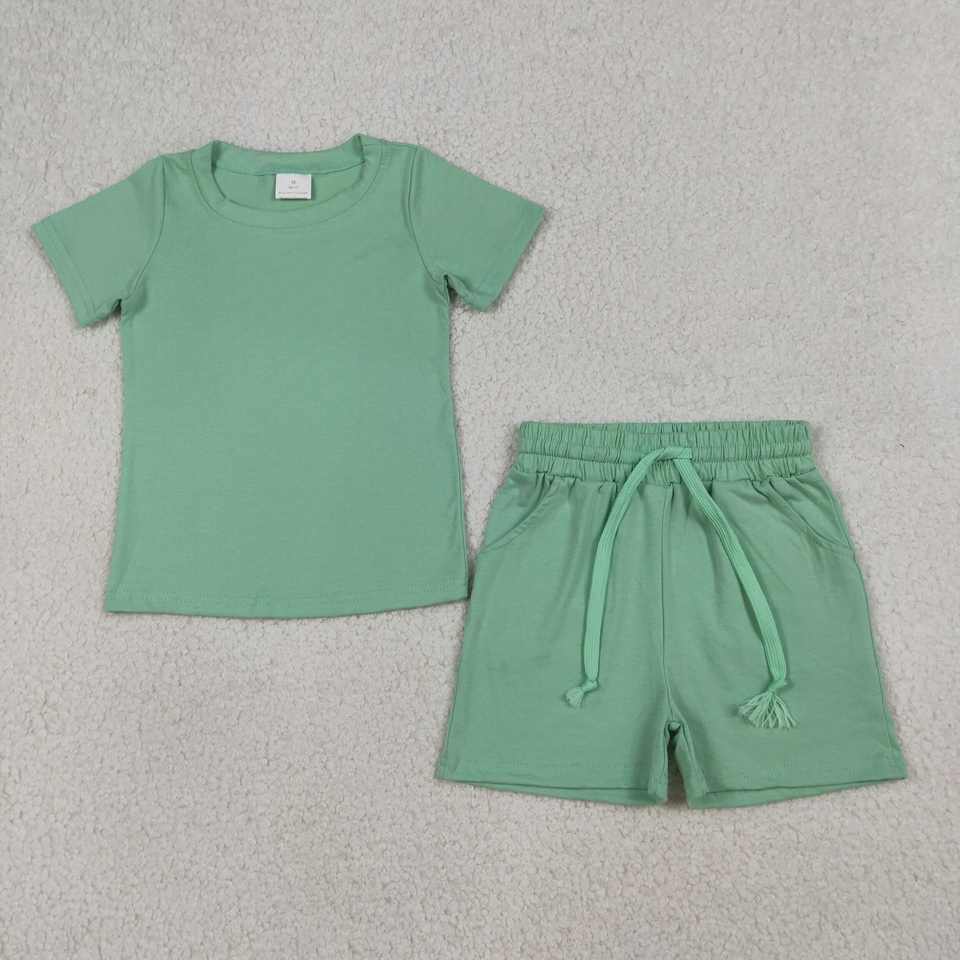 BSSO1886 RTS Boutique Conjunto de ropa verde claro para bebé, conjunto de ropa de verano al por mayor
