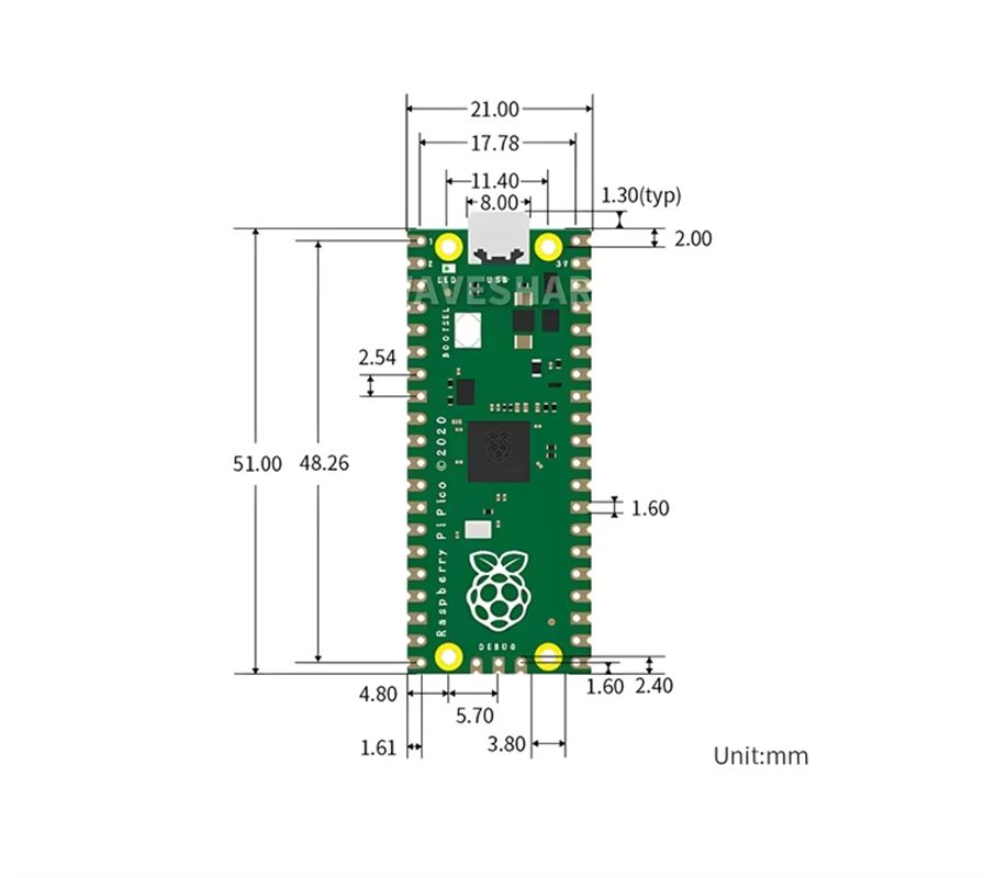 BSSY) Placa Microcontroladora Raspberry Pi P Ico H Basada en el Procesador de Doble Núcleo RP2040 Oficial