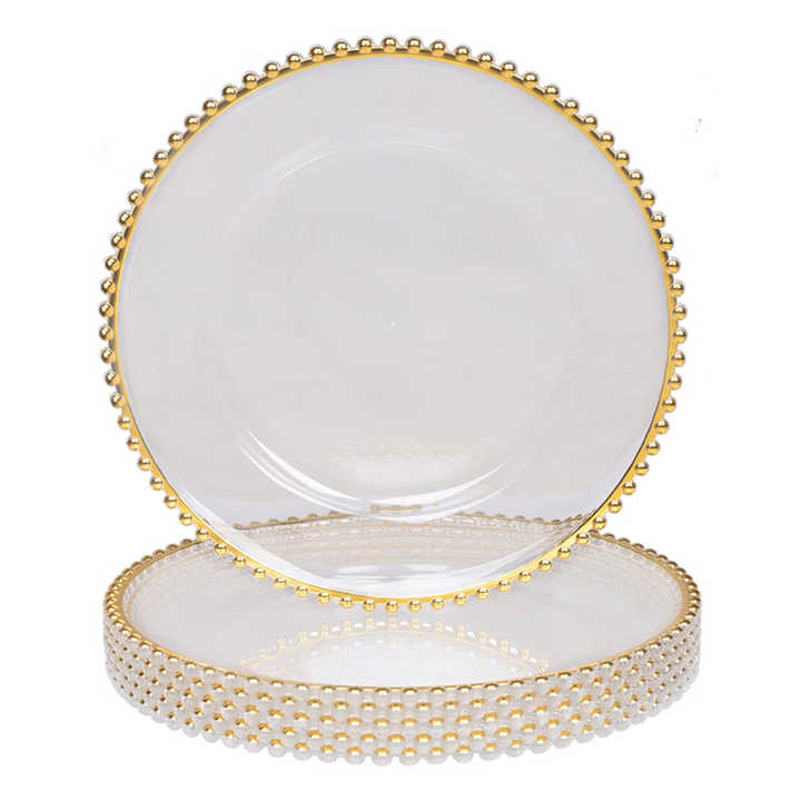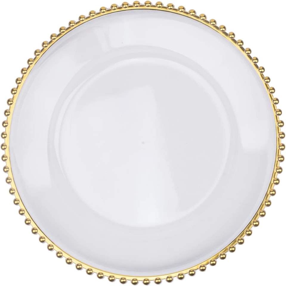 Platos Base Redondos BST de 13 Pulgadas al por Mayor, de Cristal Transparente y Acrílico con Cuentas Doradas, para Decoración de Bodas y Cenas de Fiesta