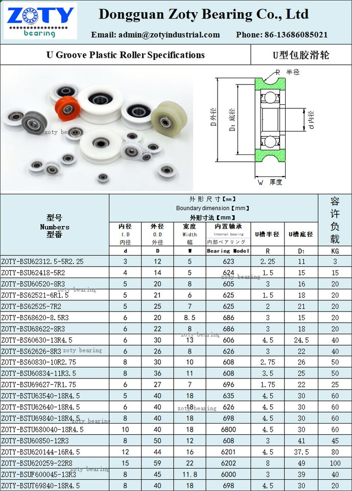 Nombre del producto:Rodamientos de rodillos plásticos duros del carril de guía para la puerta de la ducha