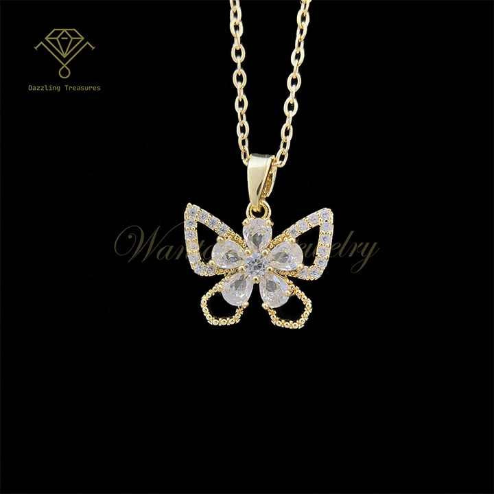 BT016 TRENDY Jewelry Ladies Collar de mariposa chapado en oro de 18 quilates con diamantes de imitación Collares giratorios de moda para fiesta de boda