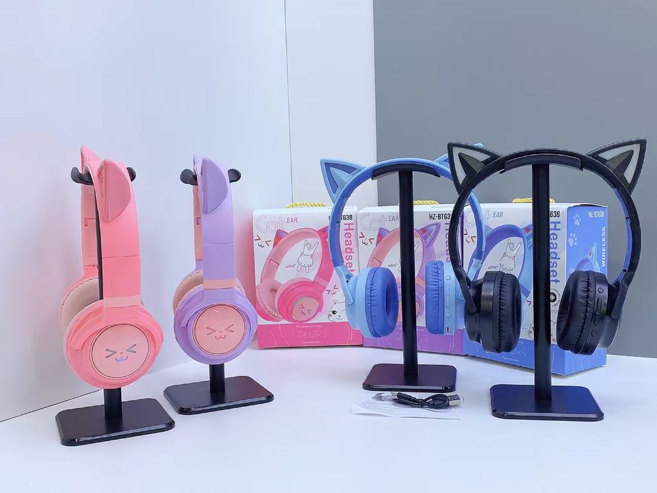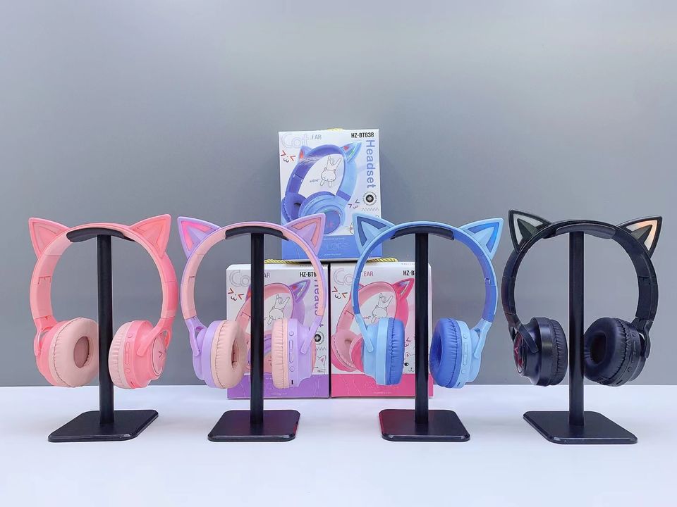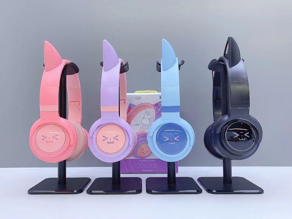 Audífonos BT638 Macaron con Luz de Respiración Colorida Degradada, Audífonos de Oreja de Gato, Audífonos Estéreo B39 BT 5.3 para Juegos, Música, Niños