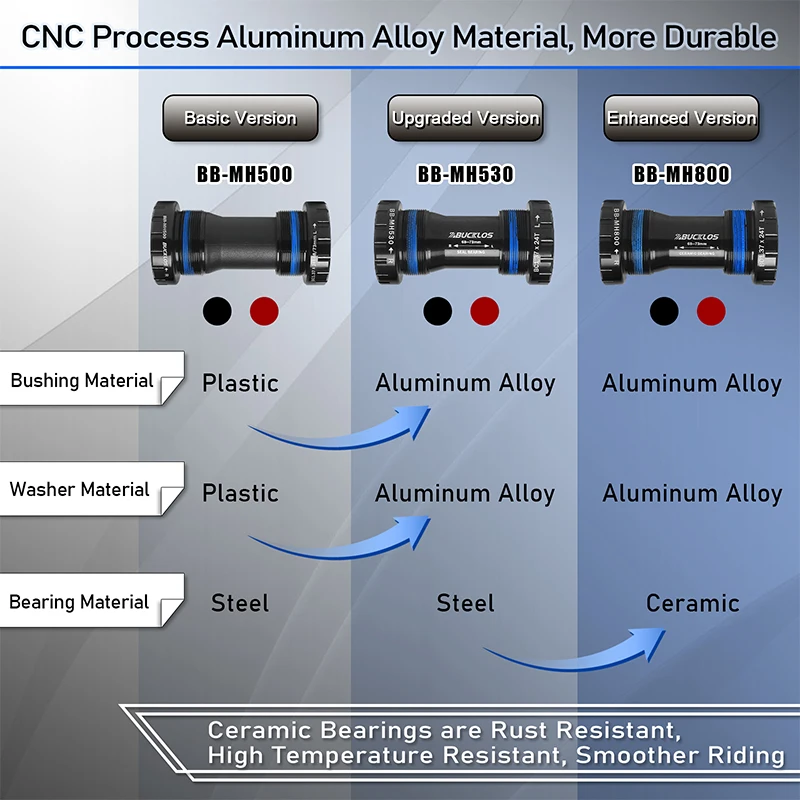 Soporte inferior BUCKLOS, soporte inferior roscado de aleación de aluminio para bicicleta, 24mm, rodamiento sellado para bicicleta de montaña y carretera BB
