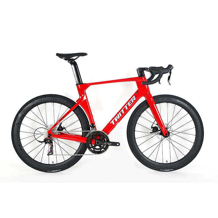 Bicicleta de carretera de fibra de carbono 700C azul para hombre con juegos de ruedas de freno de disco de carbono completo para venta al por mayor horquilla de acero