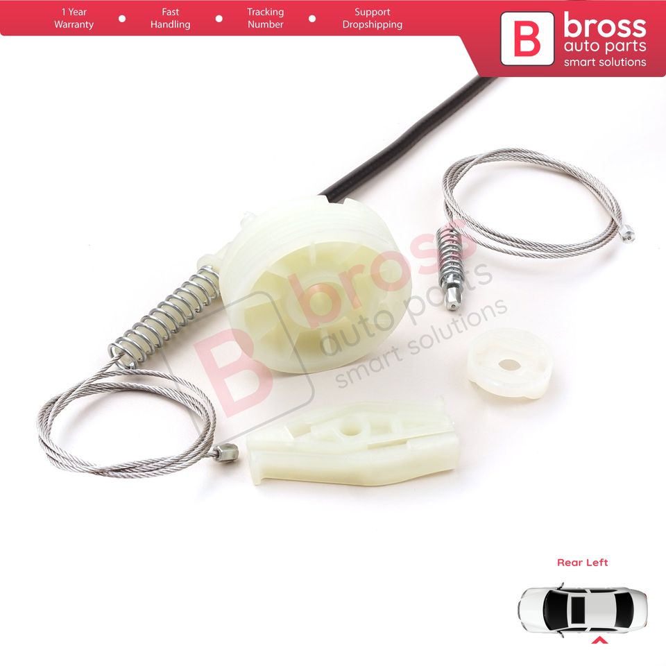 BWR912 Kit de reparación de regulador de ventana trasera izquierda para 206 CC 2D T16 2000-2008 2 puertas Coupe Cabrio 922357 Bross Auto Parts