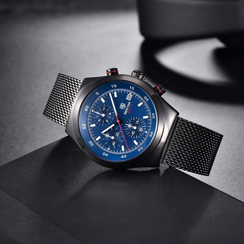 BY-5200, nuevo reloj de cuarzo analógico a la moda para hombre, cronógrafo de negocios, calendario, caja luminosa de acero inoxidable, caja ODM de lujo