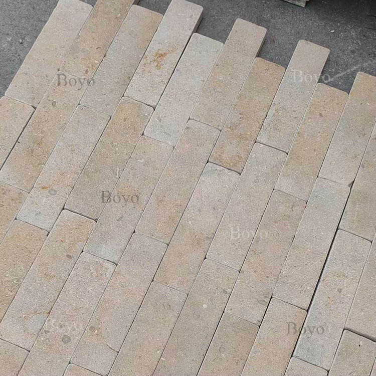 Baldosa de Piedra Caliza Beige Gem BYL010 con Cara Dividida para Revestimiento de Paredes Exteriores y Fachadas