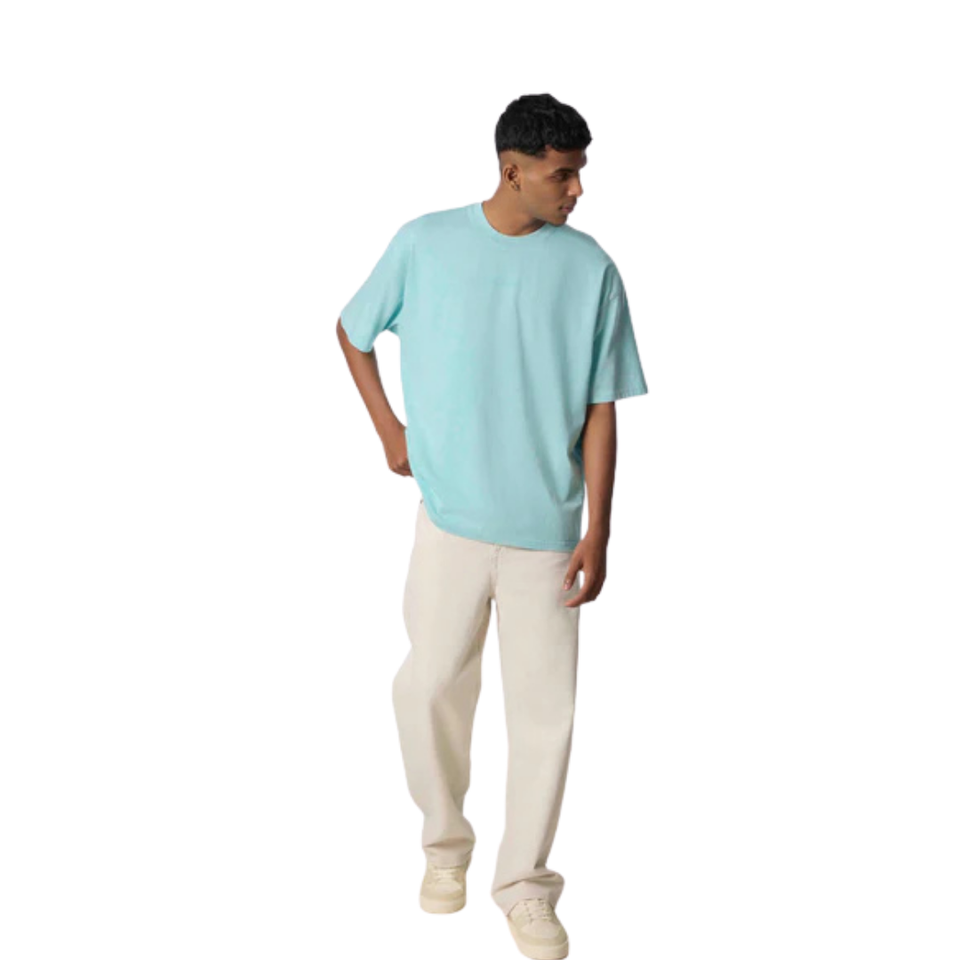 Camisetas de Hombre de Algodón 100% Lavado, Corte Holgado, Color Azul Bebé, Estilo Vintage, Ropa Urbana Informal, Suave y Transpirable para Uso Diario