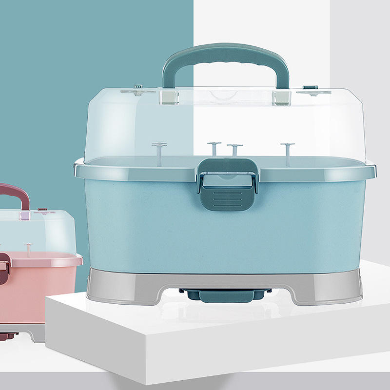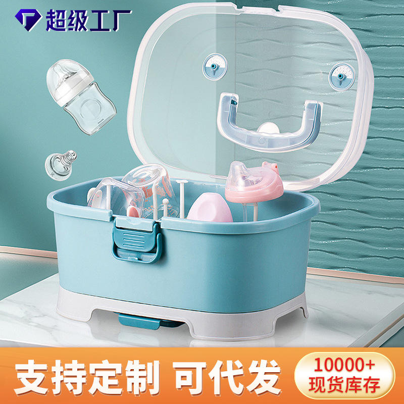 Caja de almacenamiento para biberones, estante de secado cubierto gris, grande, cuadrado, para accesorios de alimentación para bebés de 0 a 12 meses