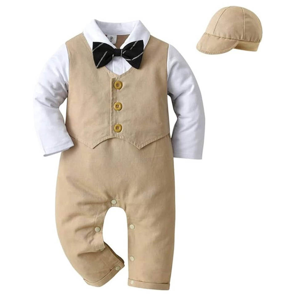 Traje de Fiesta para Bebé Niño, Mono de Manga Corta, Camisa Blanca de Caballero, Corbata de Moño, Esmoquin, Traje Formal + Sombrero