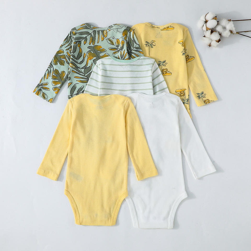 Conjunto de cinco piezas de algodón con estampado de animales de dibujos animados, mono de manga larga de punto para bebé, ropa para gatear, de la colección Baby Carter Autumn.