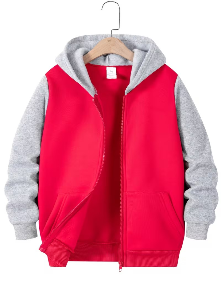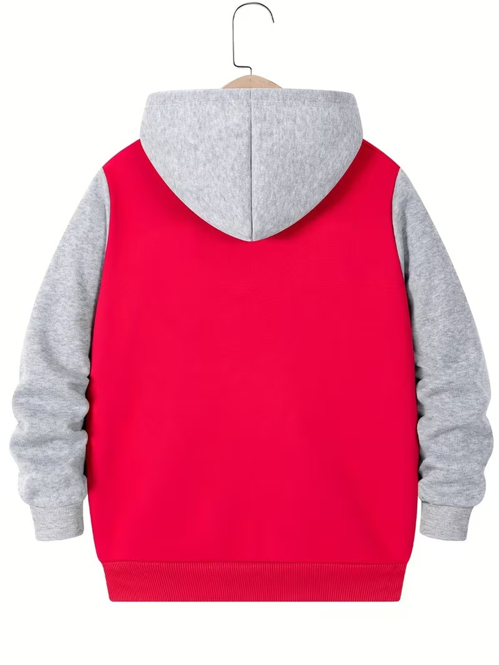 Baby Classic Color-Block Style Zip-Up Hooded Jersey Sweatshirt 100% Cotton Autumn Winter Knitted Comfortable Casual Cardigan