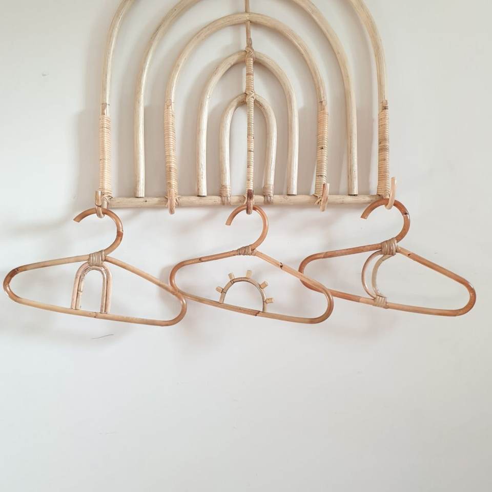 Colgador de ropa de bebé, perchas de ropa de ratán natural artesanal, precio competitivo al por mayor