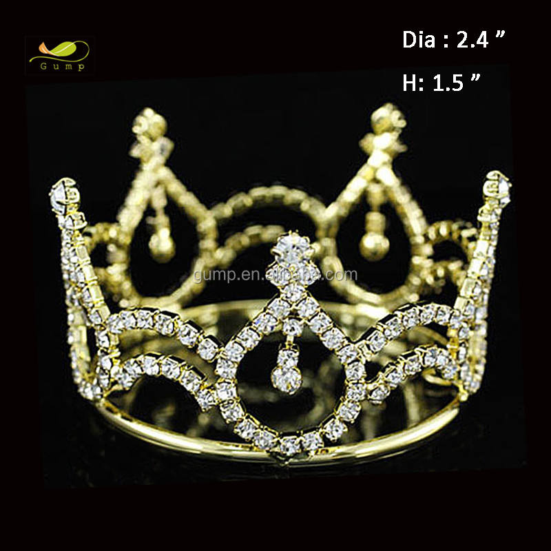 Mini Tiara de Cristal para Bebé, Color Dorado, Forma Circular Completa