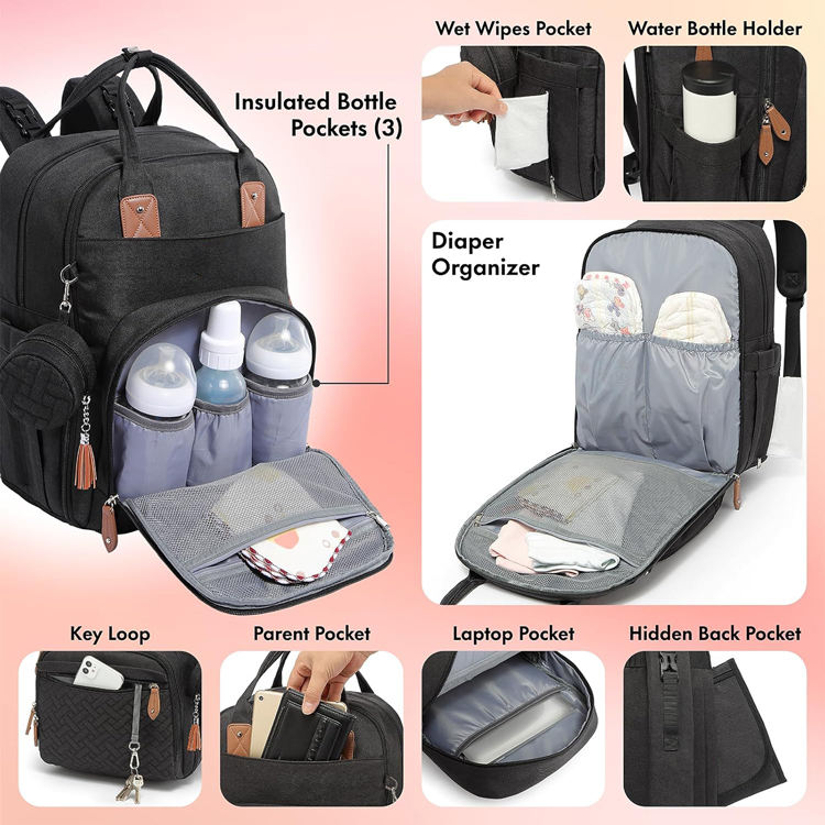 Nombre del producto:Mochila para pañales de bebé con cambiador portátil y estuche para chupete