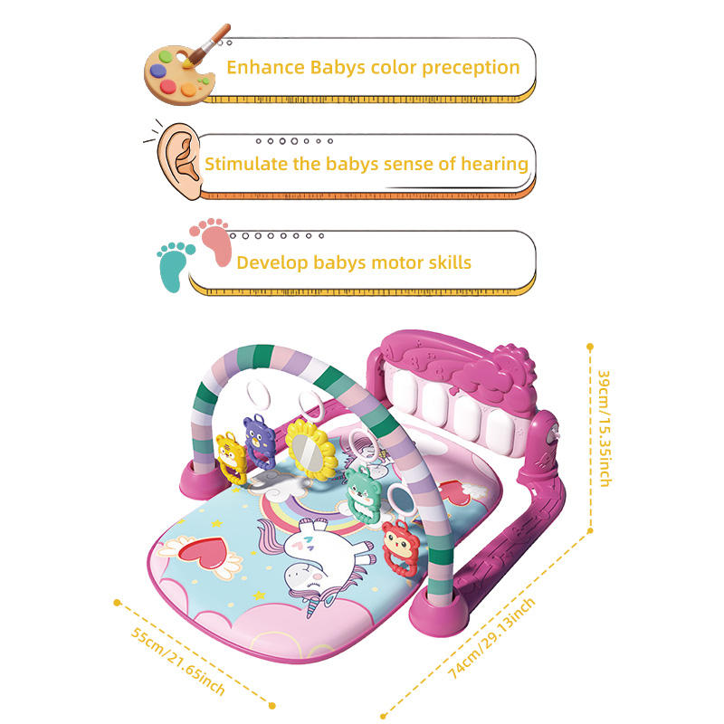 Gimnasio de Juego para Bebés con Música, Piano, Tapete de Juego Suave y Arco de Juguetes para Estimulación Sensorial