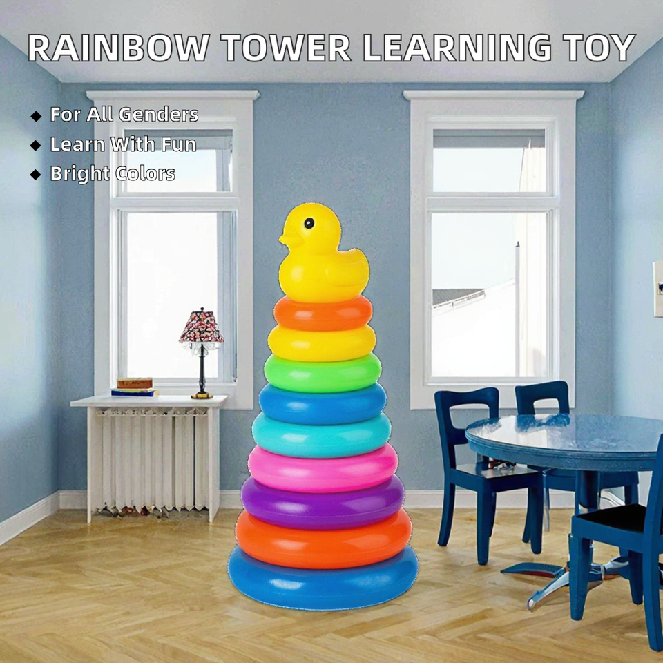 Juguete de anillos apilables de arcoíris Montessori para bebés, reconocimiento de colores, coordinación mano-ojo y pensamiento lógico, juguete de desarrollo para niños