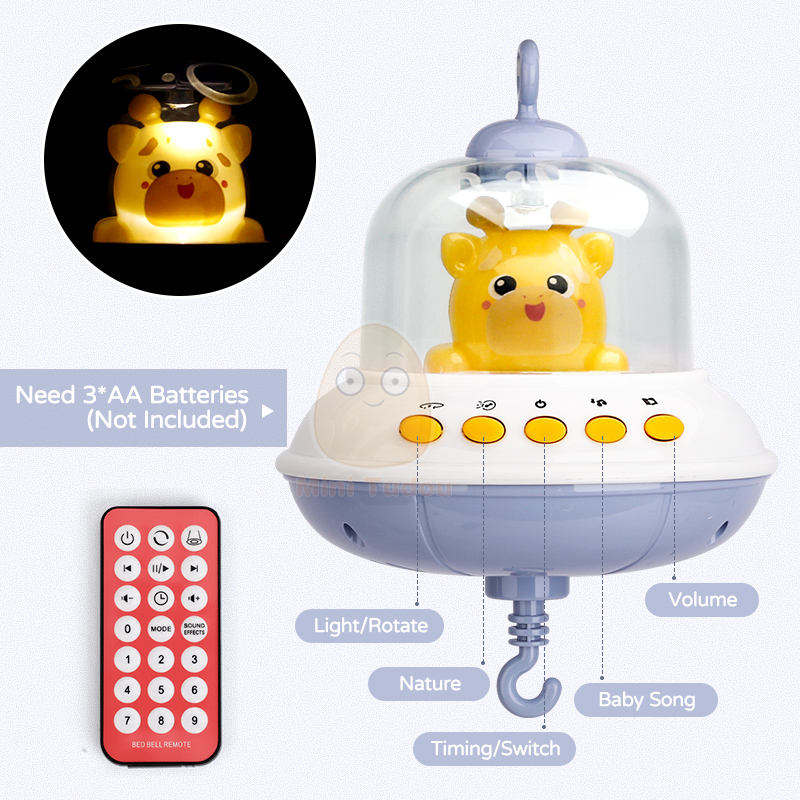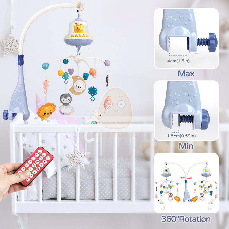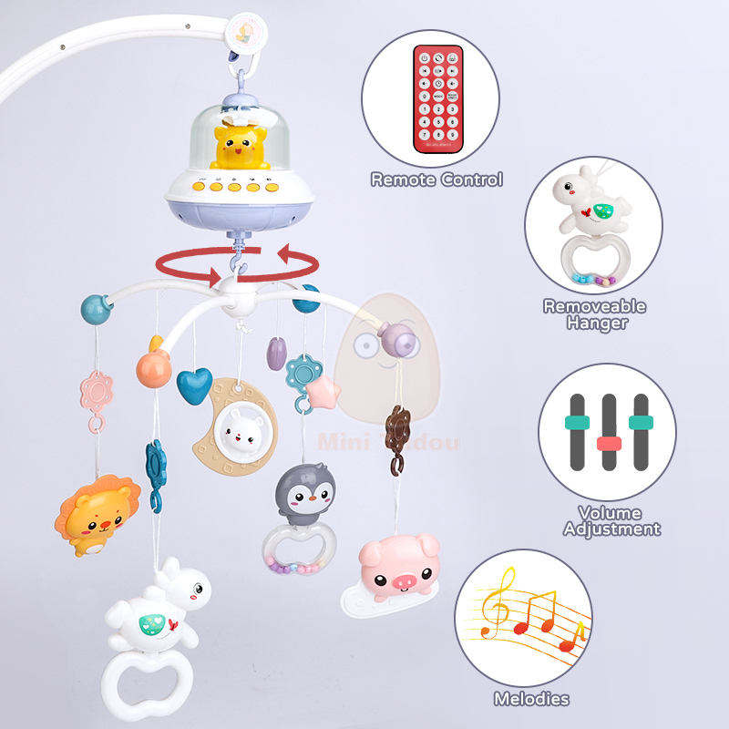 Móvil musical giratorio para cuna de bebé, 0-24 meses, sonajero relajante para recién nacidos, juguete OVNI colgante para cuna con función de agarre