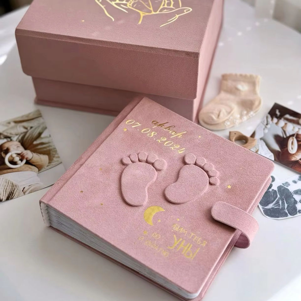 Álbum de fotos de bebé, diseño de almacenamiento de fotos, caja de regalo de recuerdo de terciopelo personalizado, nuevo marco de bebé, libro, mini caja de bebé para mamá